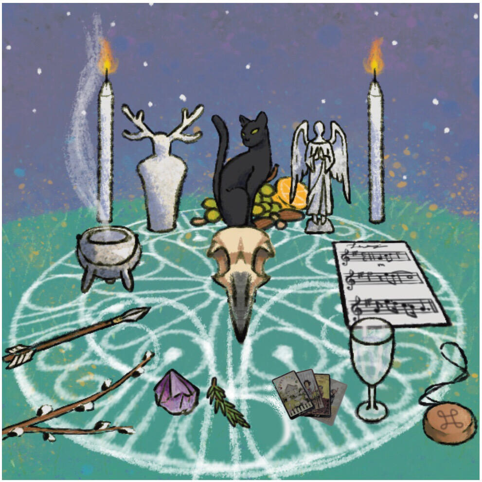 Tarot card reading by Mavvi Solarvale. The shop specializes in rare magical items that Mavvi finds during her travels. Also available are fortune cards, lucky charms, spell jars & sachets, candles, herb bundles, and other items for the discerning magical practitioner or any who seek magical aide for their situation.